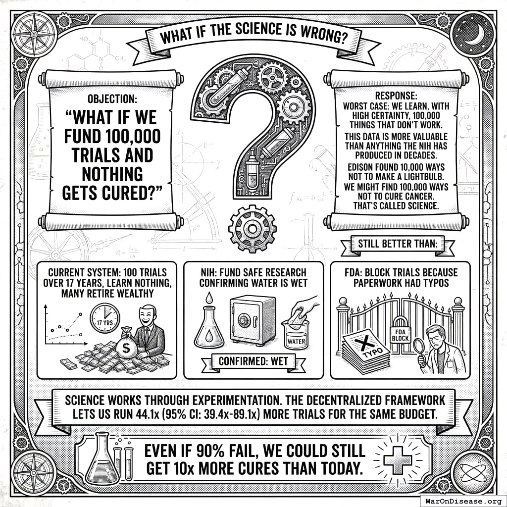 Objection: “What if we fund 100,000 trials and nothing gets cured?”