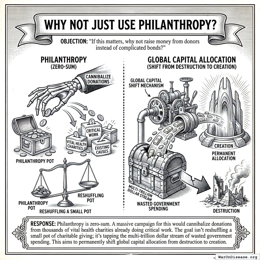 Objection: “If this matters, why not raise money from donors instead of complicated bonds?”